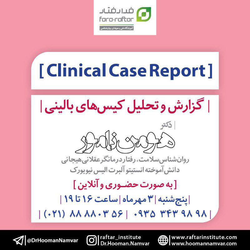 سلسله جلسات Clinical Case Report با تدریس دکتر هومن نامور (روانشناس سلامت و رفتاردرمانگر عقلانیهیجانی) فرصتی ارزشمند برای دانشجویان و درمانگران است تا در یک محیط آموزشی، مهارتهای بالینی خود را ارتقا دهند.